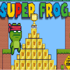 With the same mechanism as Mario, this funny adventure will bring you restful and wonderful moments. In the game, you will change into a frog. You need to overcome all the obstacles and collect fruits to complete the challenge. Use the arrow key to turn left, turn right or jump up. Avoid the enemies and attack them when you can. You will get more scores if you can eliminate enemies. To attack them, you need to jump up on them. Remember to collect fruits to increase your score. You just have 3 life, so if you lose all of them, you will die. If you touch enemies over 3 times or fall down the abyss, you will fail that level. The game gives you 200 seconds to complete a level. Try to finish each level in a short time to increase your bonuses and get a high score. Let this adventure become your favorite taste.